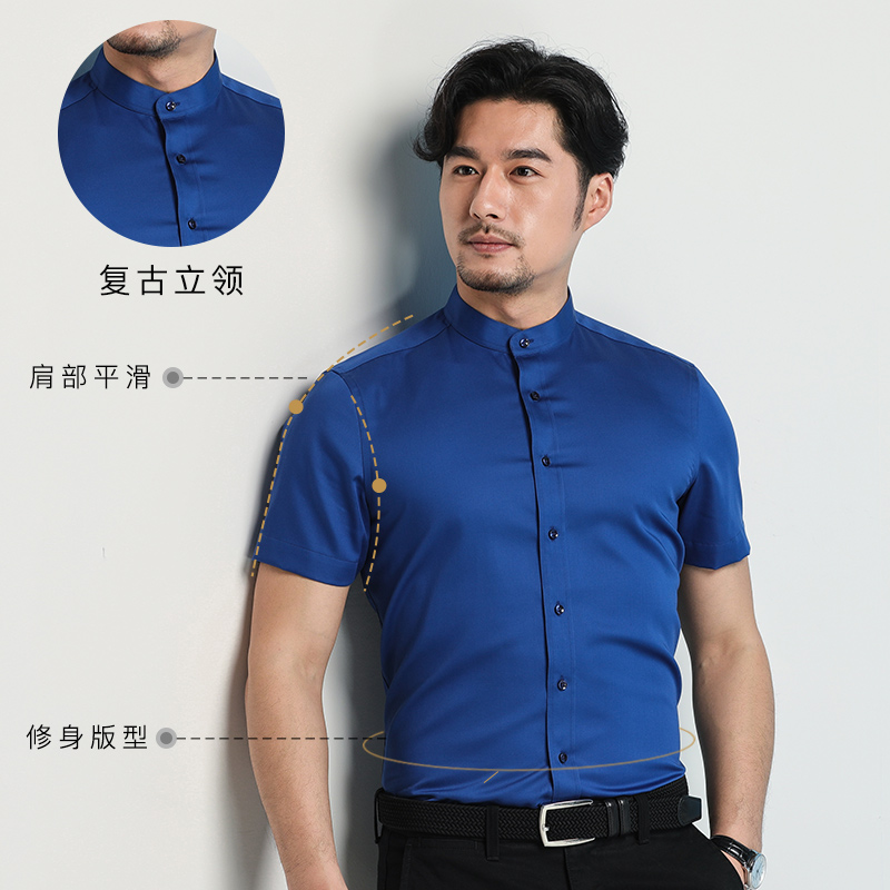 / 中華立領襯衫男短袖商務休閑修身純棉韓版潮流純色夏季襯衣中國風