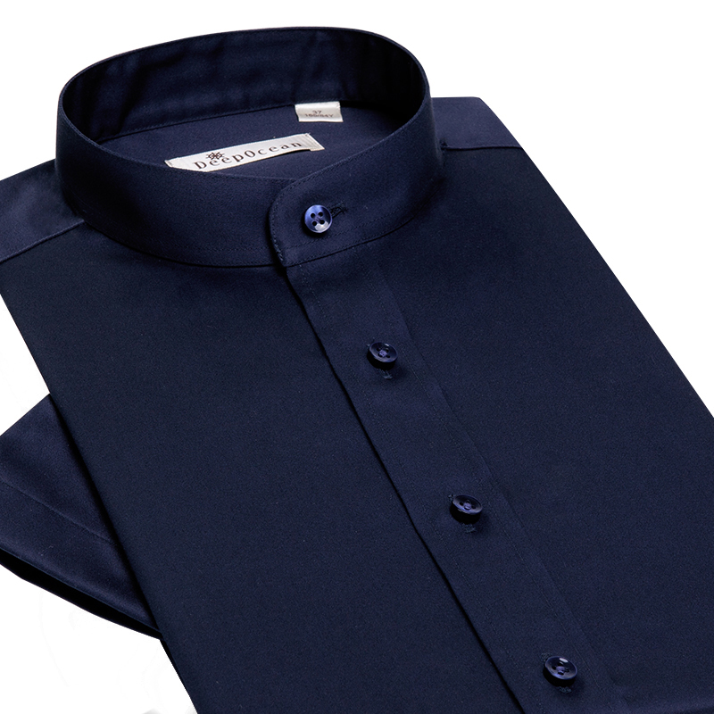 中華立領襯衫男短袖商務休閑修身純棉韓版潮流純色夏季襯衣中國風