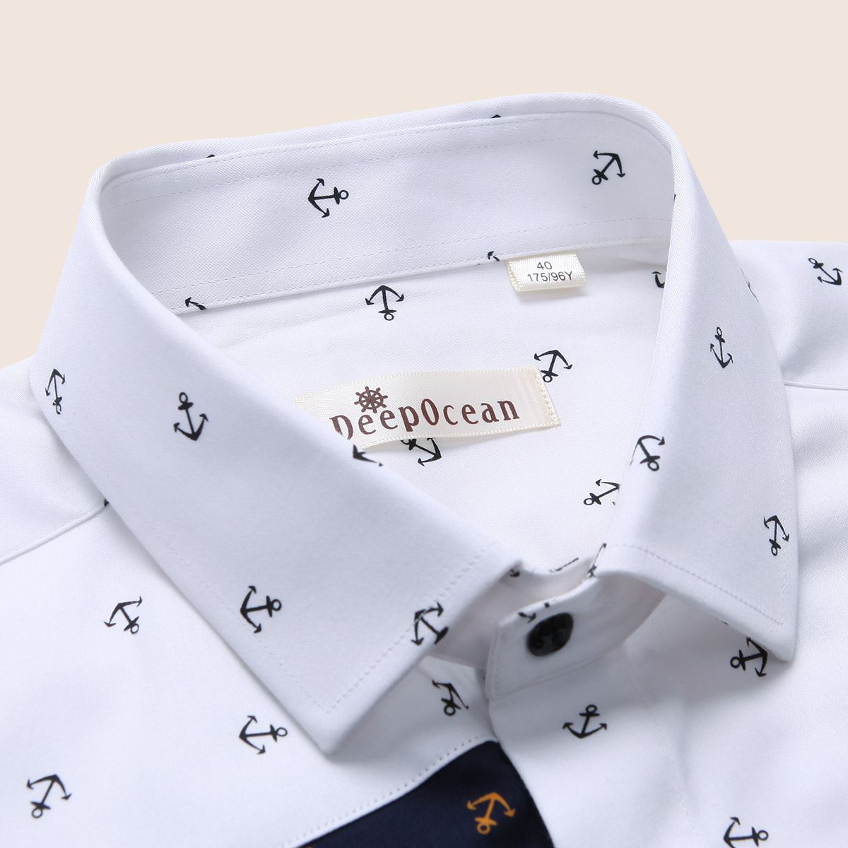 / 深海男士個性長袖襯衫時尚斜裁拼接印花休閑絲光棉純棉英襯衣秋款