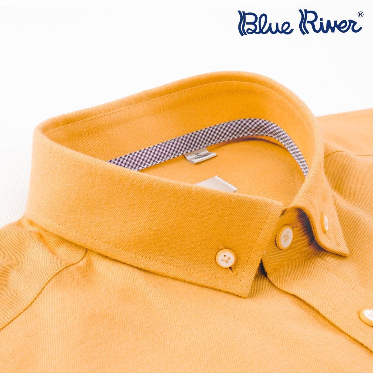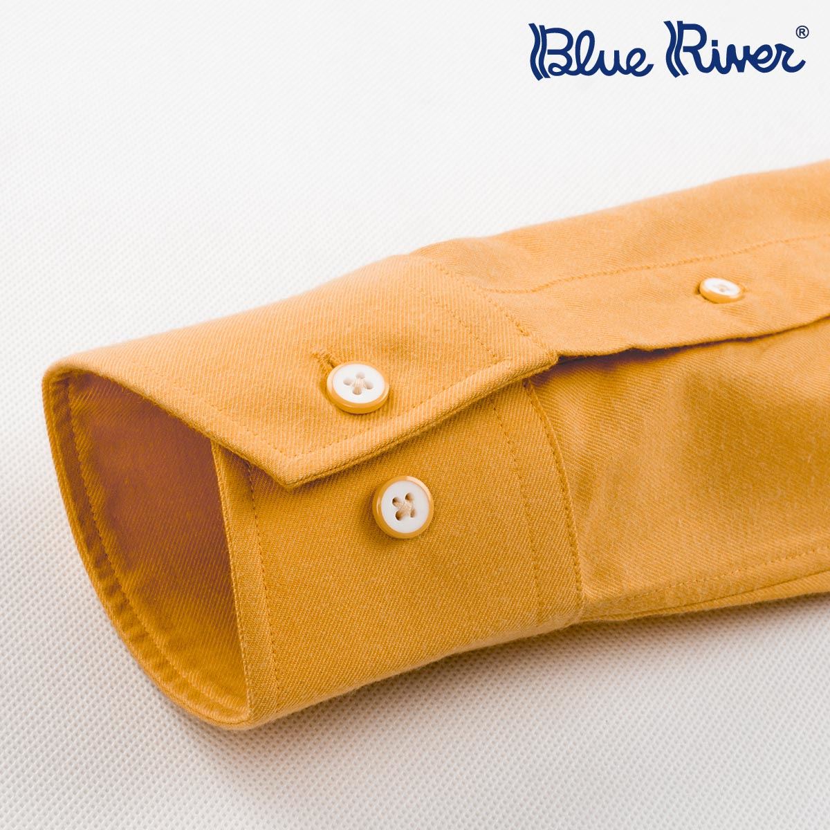/ BLUE RIVER/藍河2017新款商務休閑襯衫男長袖黃色釘扣領英倫襯衣