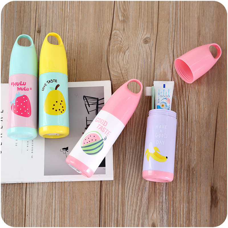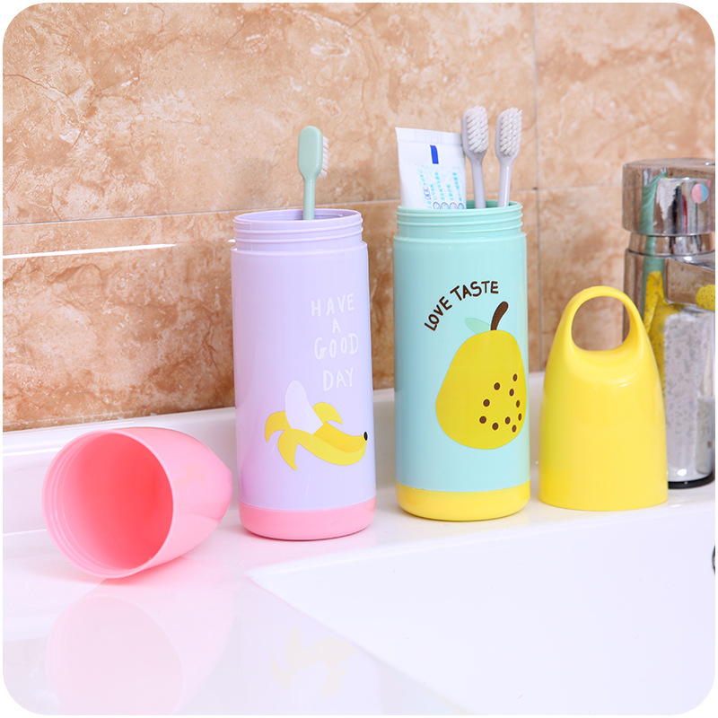 牙刷收納盒可愛水果圖案便攜式牙刷盒帶蓋旅行刷牙洗漱牙具手提盒