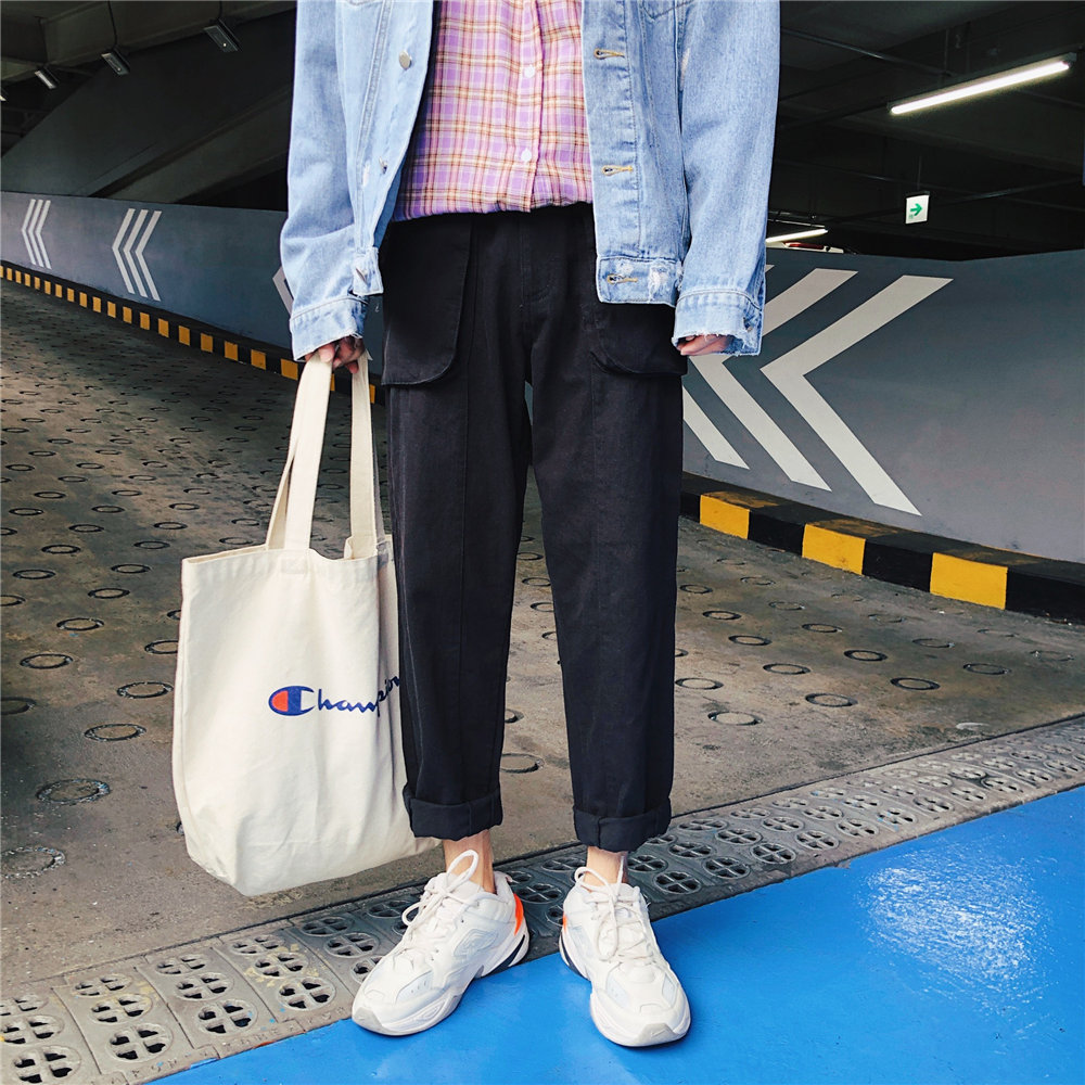 / 寬松港風褲子秋季直筒褲休閑褲韓版男士長褲潮流九分褲青少年男裝
