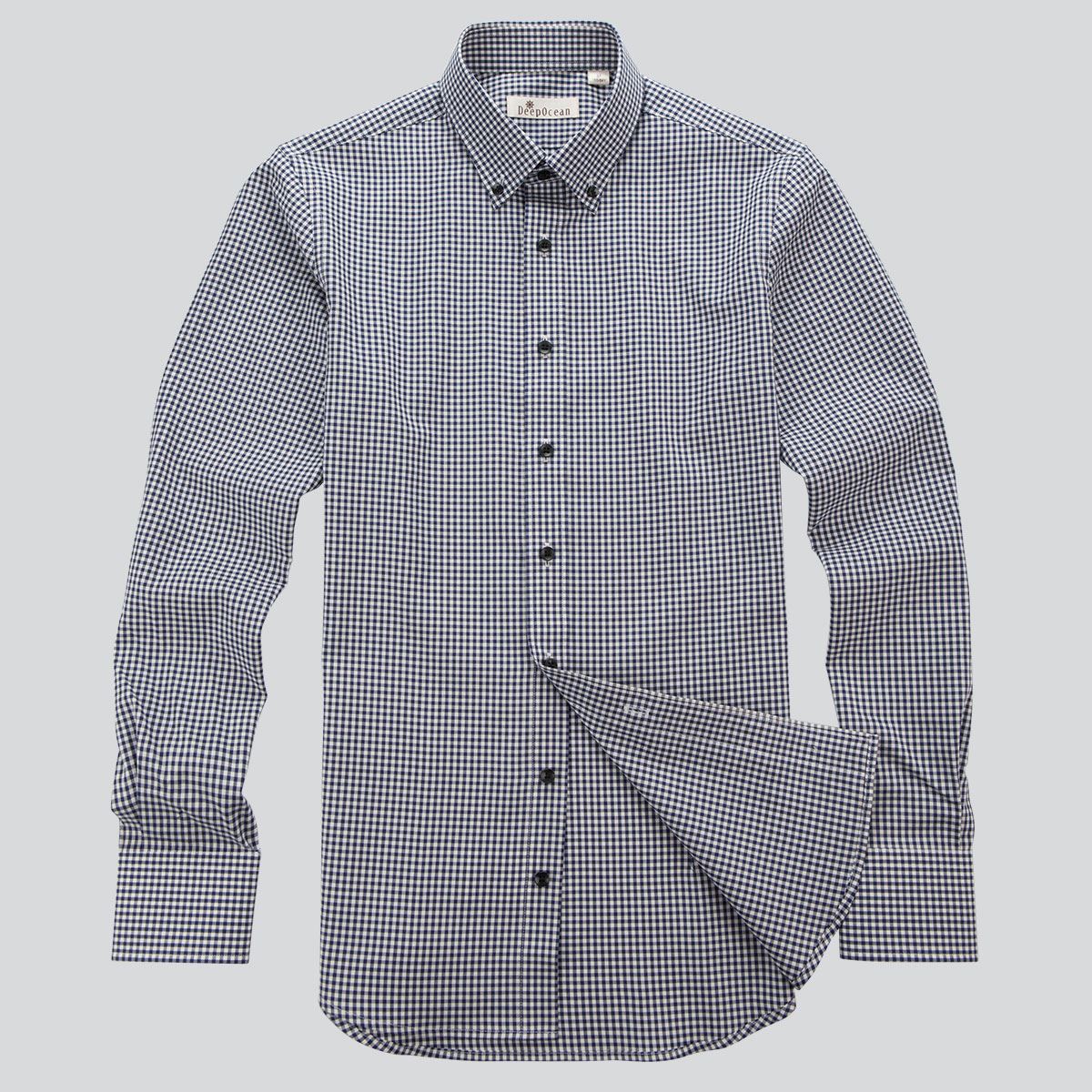 / DEEPOCEAN秋季新款格子襯衫男長袖修身休閑襯衣青年男式寸衫衣服