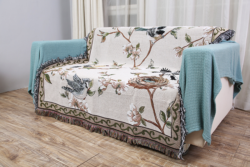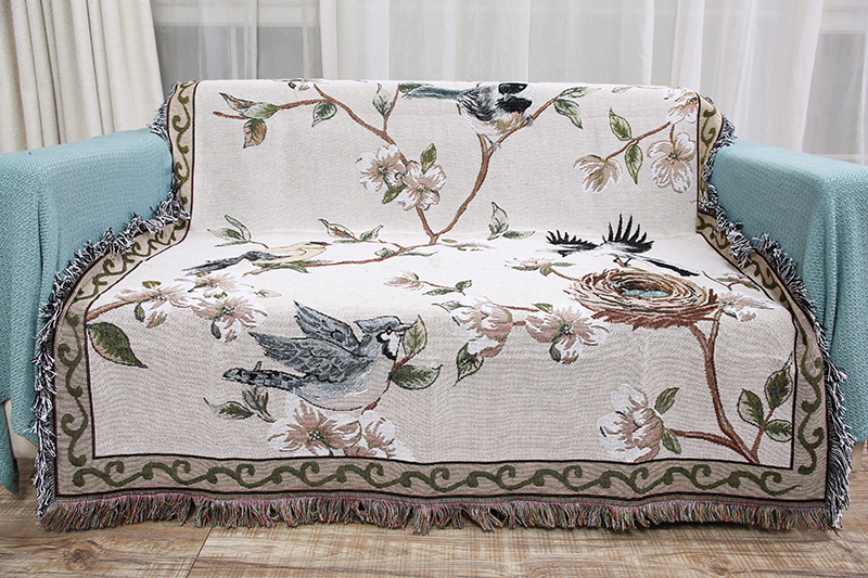 白色莫奈沙發毯休閑毯純棉線毯時光漫步毯沙發巾波西米亞
