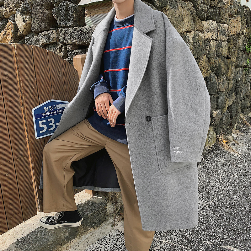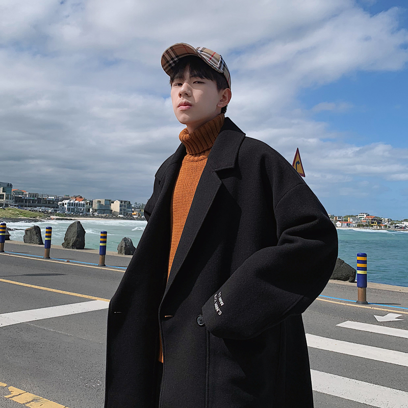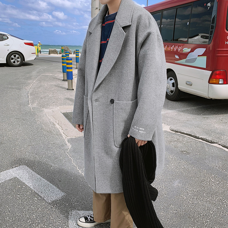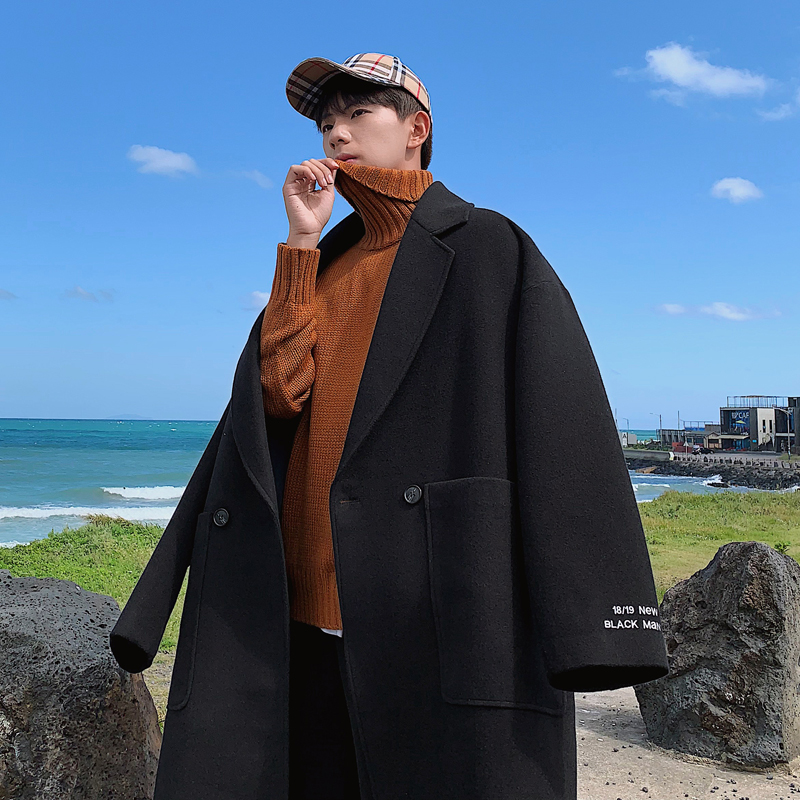 / 文藝男女店男士中長款毛呢大衣冬季潮流韓版刺繡呢大衣英倫風外套