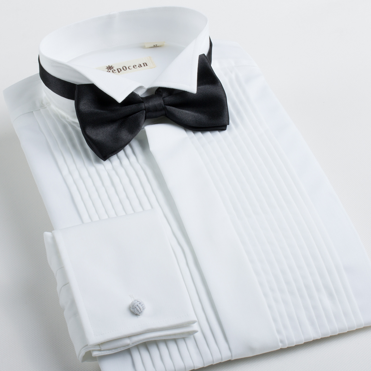 / 白色蝴蝶結襯衫男士結婚新郎禮服燕子領長袖襯衣法式袖扣商務正裝