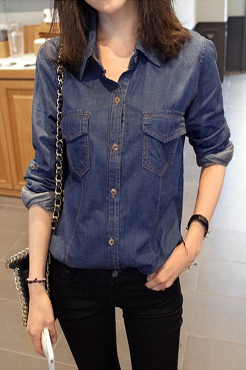 2016春裝新款牛仔襯衫大碼女長袖外套薄韓版上衣顯瘦牛仔襯衣女裝