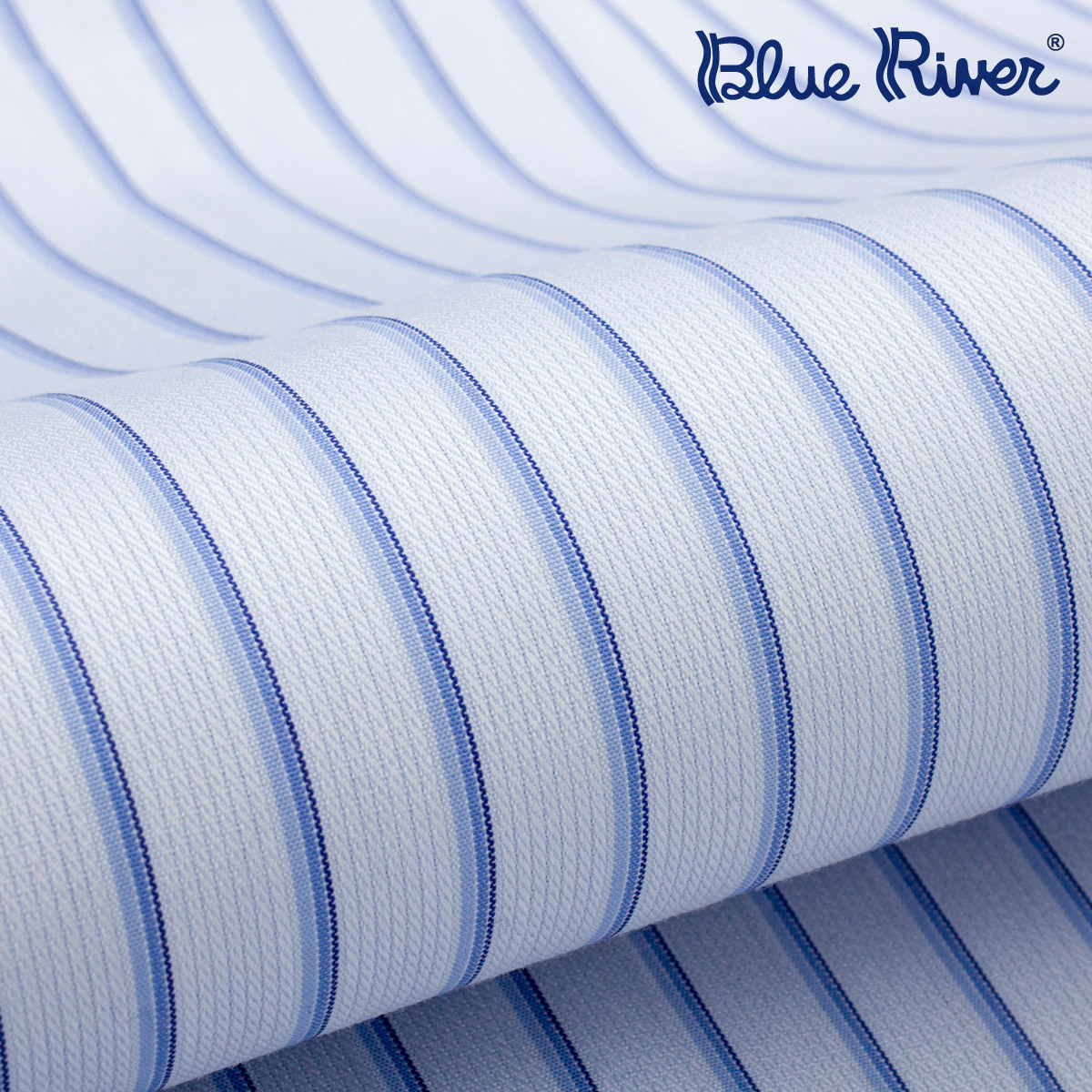 / 藍河夏季條紋男士襯衫男短袖襯衣半袖寸純棉商務休閑修身韓版潮流
