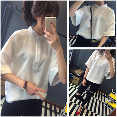 / 韓國ulzzang女襯衫港味復古chic學院百搭bf原宿學生短袖上衣服夏