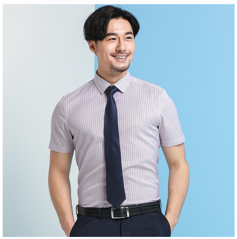 純棉免燙抗皺襯衫男藍白條紋襯衣短袖男士寸商務休閑修身韓版薄款