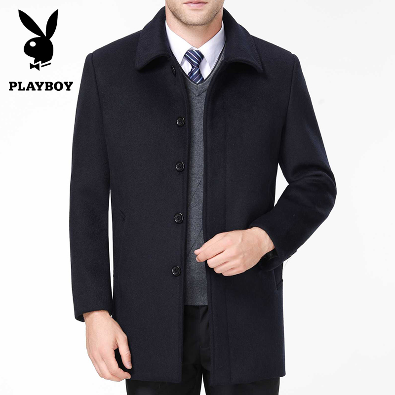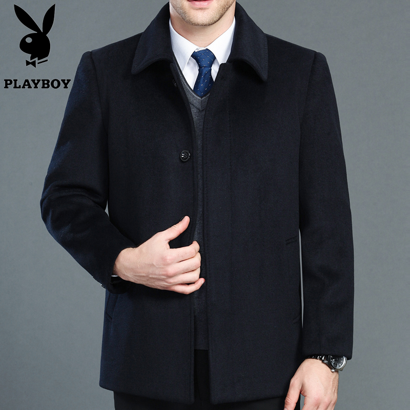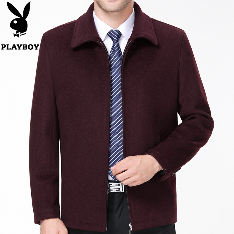 冬花花公子品牌中老年男士羊絨夾克商務男爸爸裝加厚毛呢大衣外套