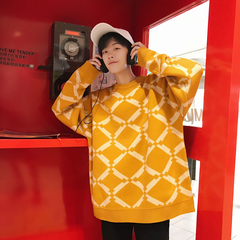 / 黃色毛衣男士冬季韓版潮衣服2018新款潮流寬松針織衫情侶線衣高領