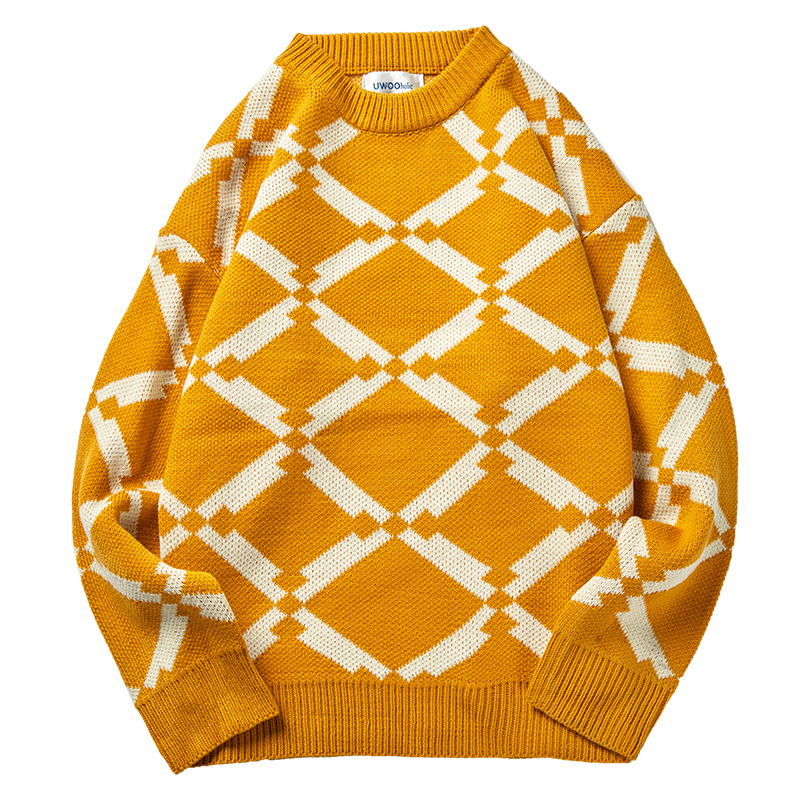 黃色毛衣男士冬季韓版潮衣服2018新款潮流寬松針織衫情侶線衣高領