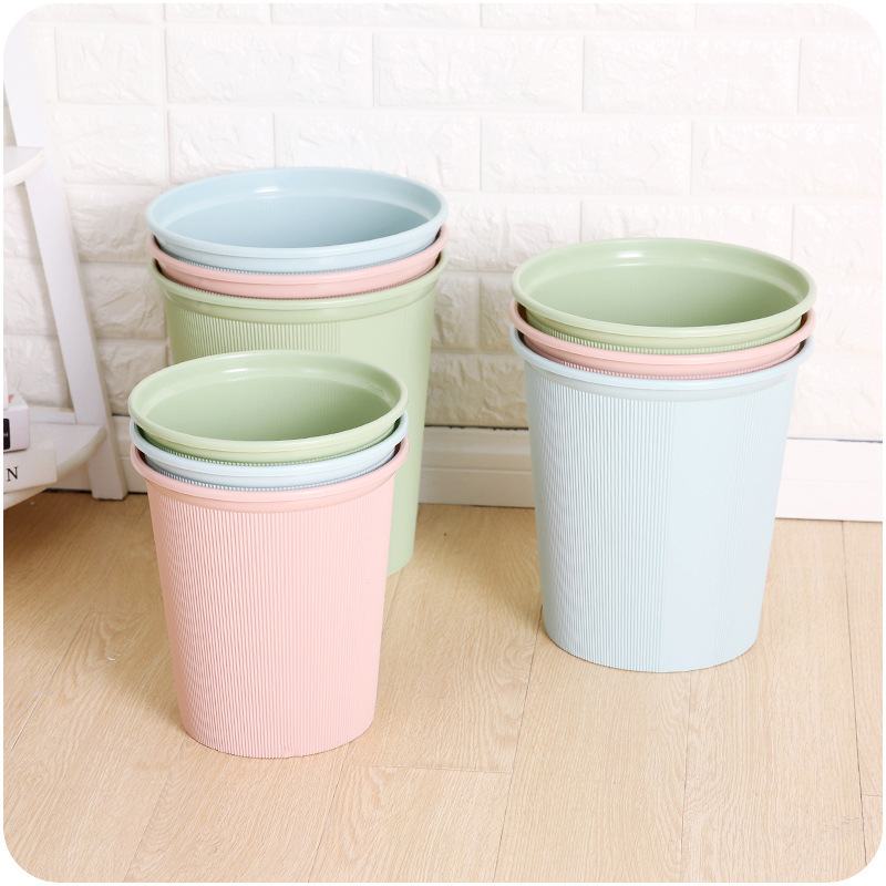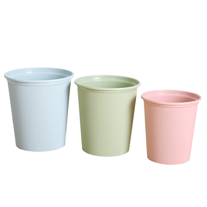 / 家用辦公垃圾桶素色豎條紋壓花帶壓圈垃圾筒廚衛大中小號無蓋紙簍