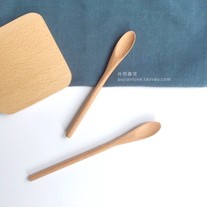 樸簡 外貿日式櫸木無漆木柄咖啡勺 餐勺 攪拌勺