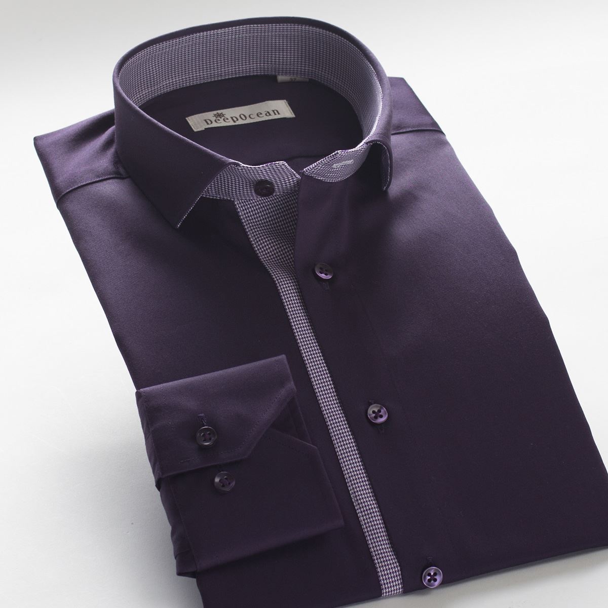 / DEEPOCEAN秋季新品絲光棉時尚門襟拼接襯衫長袖純棉修身男裝襯衣