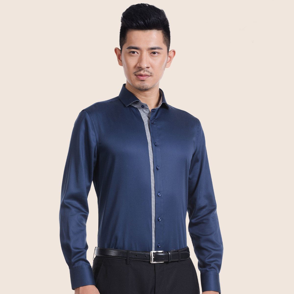 DEEPOCEAN秋季新品絲光棉時尚門襟拼接襯衫長袖純棉修身男裝襯衣