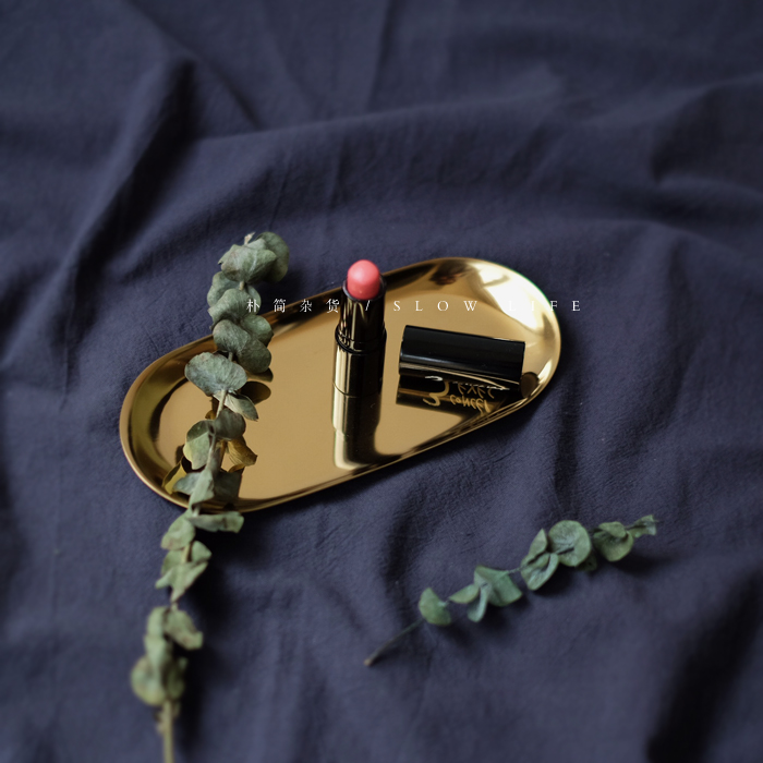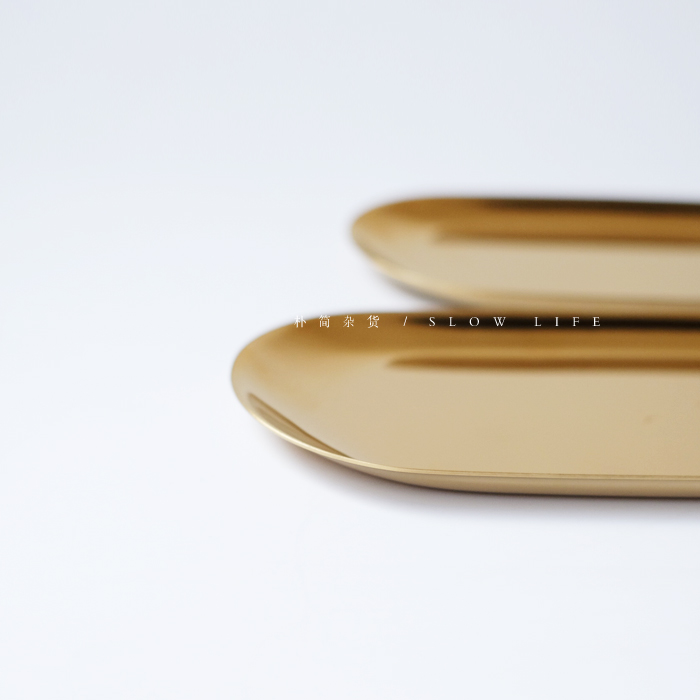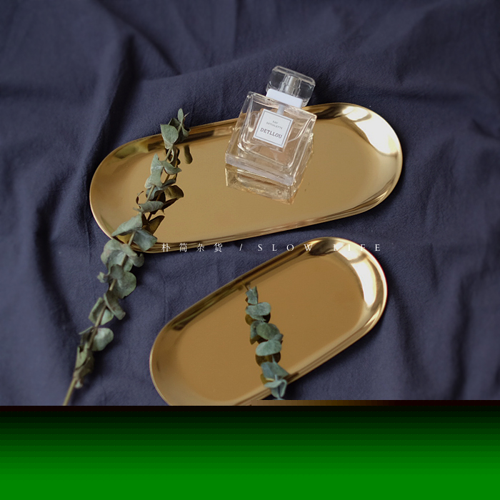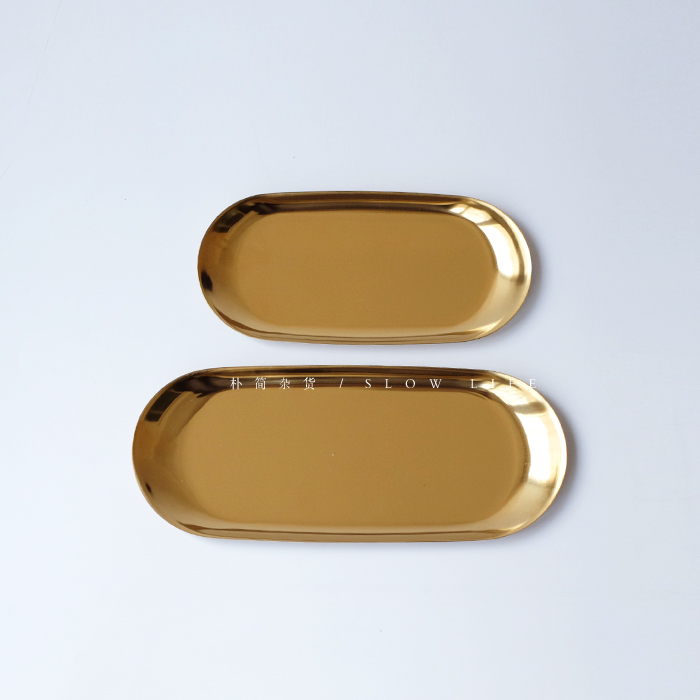 樸簡 丹麥風格黃銅金色金屬托盤 擺拍拍攝背景橢圓盤 果盤