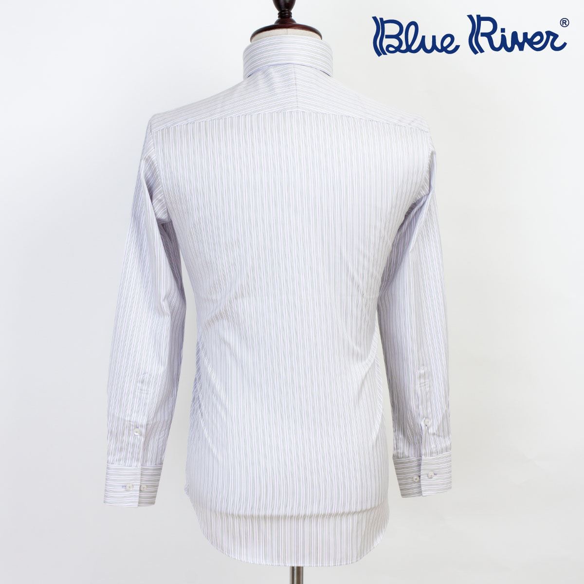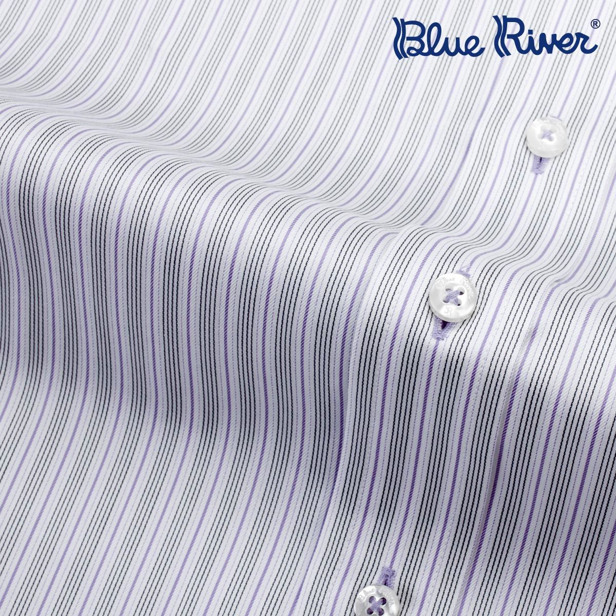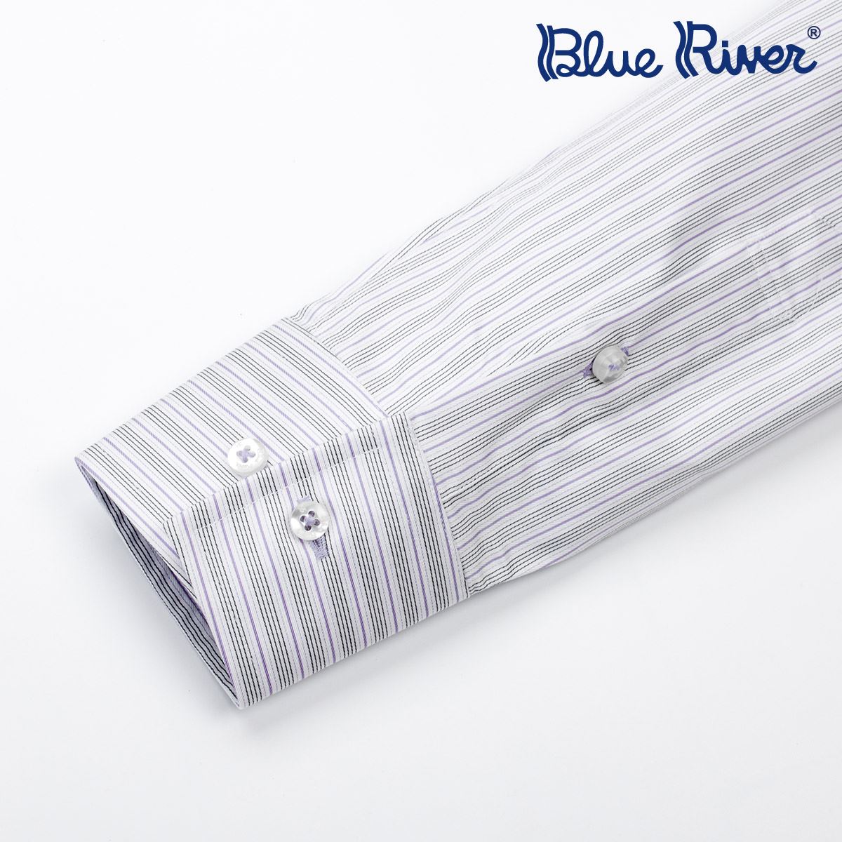 / 藍河秋秋季男士淺紫條紋襯衫男長袖商務修身型男裝高支棉襯衣