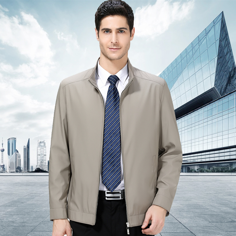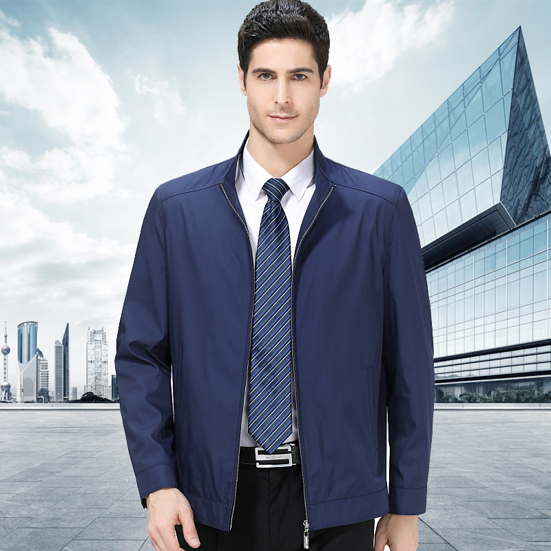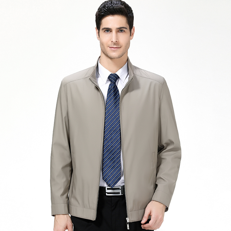 2018新款秋裝品牌中年男士休閑夾克衫商務男裝立領純色薄款外套