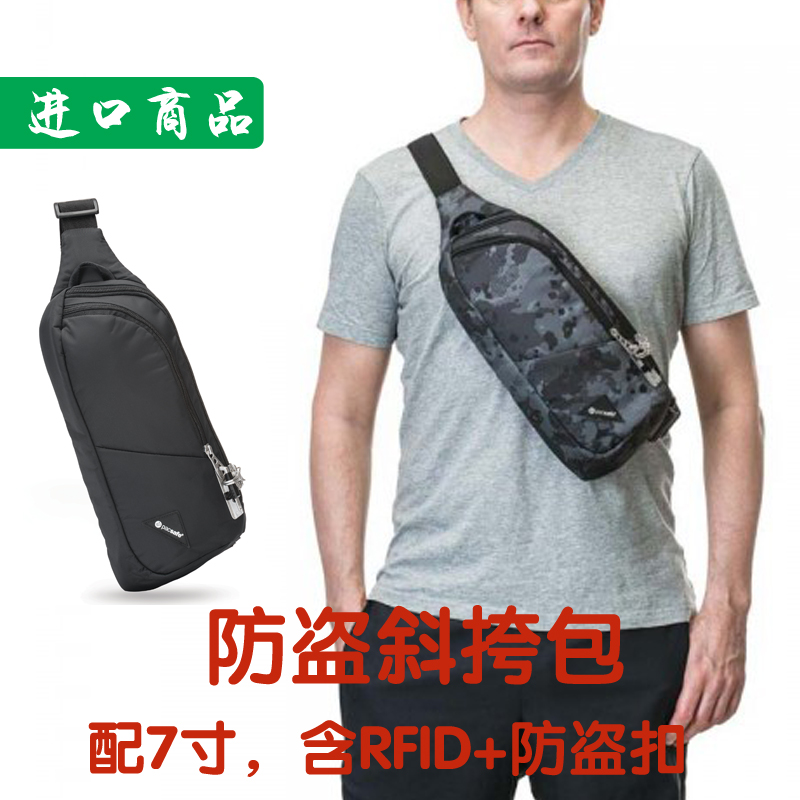 / pacsafe 防盜防水單肩斜挎包簡約百搭戶外旅行休閑胸包男