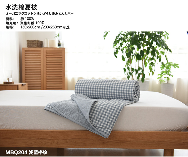 關于她:潔凈的色調,瞬間點亮居室的氣氛,簡潔明快的設計,簡約不簡單的條紋格,抒寫仲夏記憶……此款為出口原單富有異國情調,經典條紋格質量比一般款式夏涼被質量要好很多,手感舒適,可用作床蓋,夏季薄被等等……