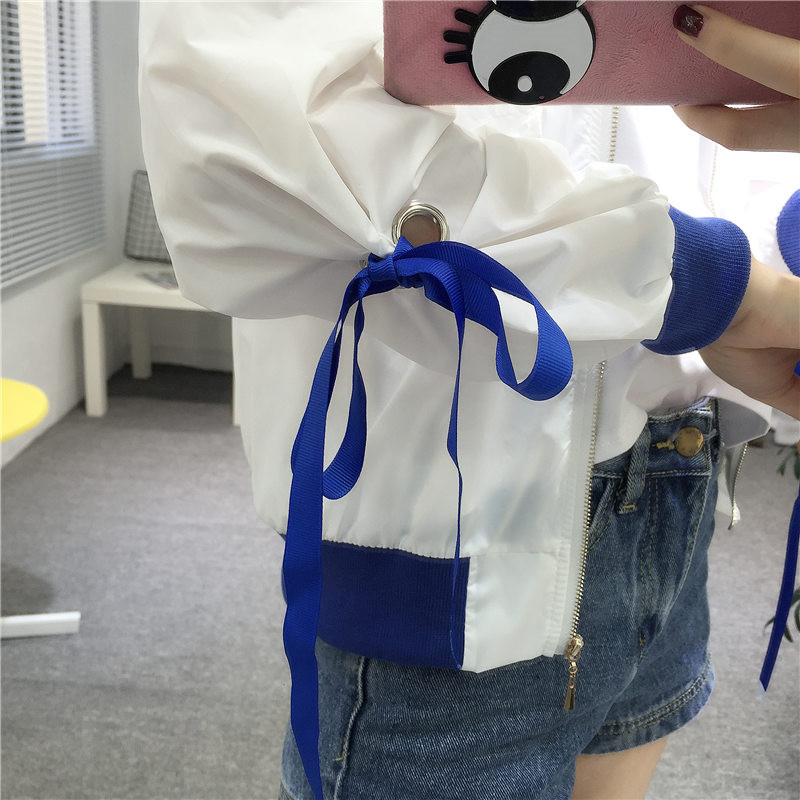 原宿風bf潮學生男女情侶裝防曬服防曬衣連帽字母織帶飄帶短外套夏