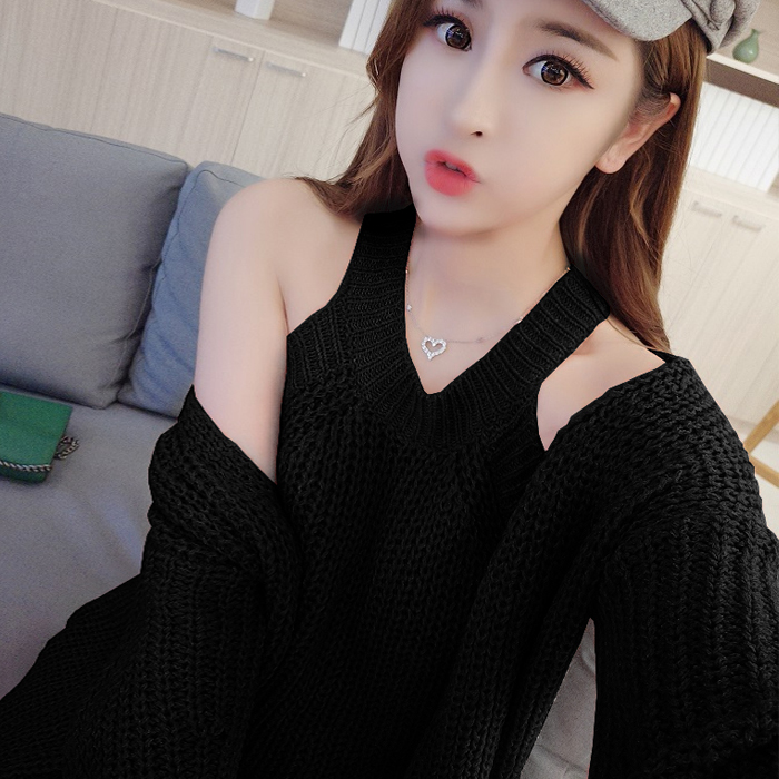 / 秋裝新款潮韓版氣質掛脖背心上衣女裝中長款開衫外套兩件套針織衫