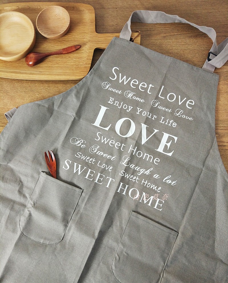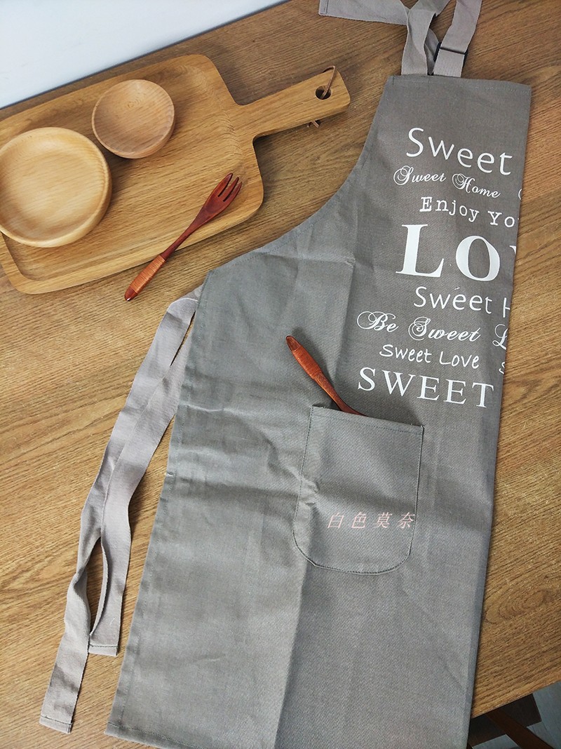 / [白色莫奈]北歐素色字母印花加厚純棉帆布家居廚房高端情侶圍裙