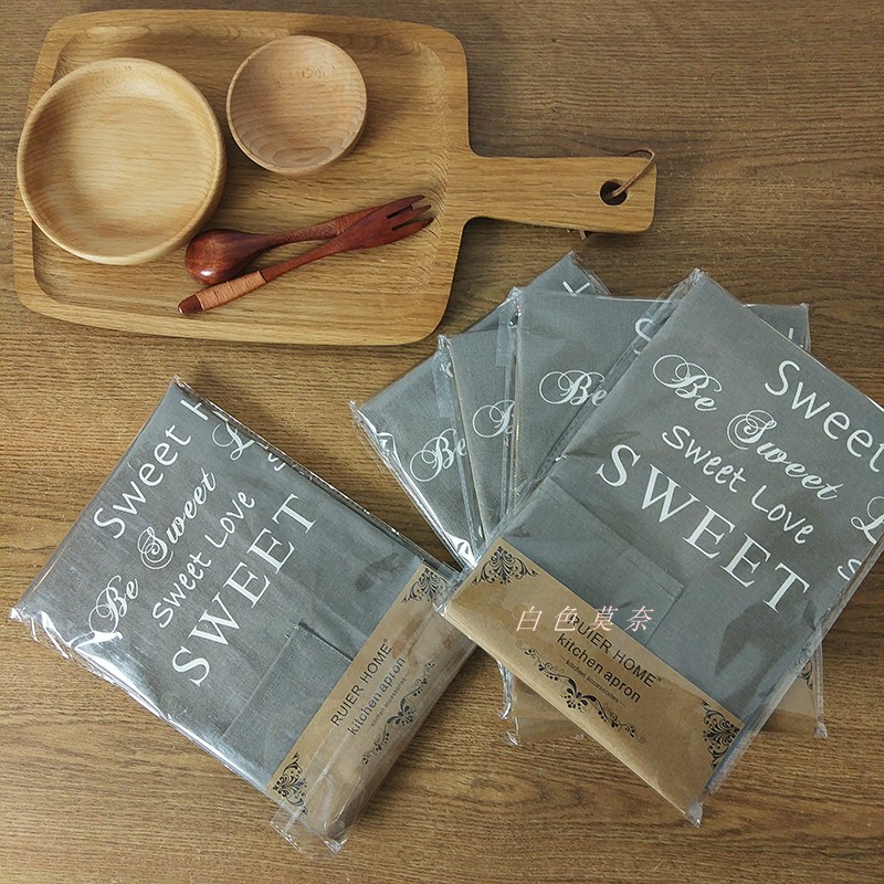 [白色莫奈]北歐素色字母印花加厚純棉帆布家居廚房高端情侶圍裙