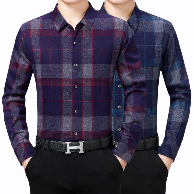 / 花花公子正品中年男士長袖羊絨保暖襯衫商務男裝加絨加厚襯衣冬季